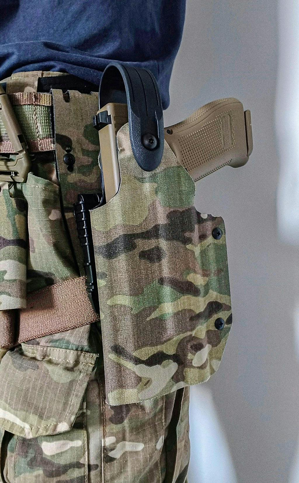 Versatile Fit: Compatible with belts up to 2.25” (55mm) wide, this mount is also adaptable to larger war belts with 3 rows of MOLLE for added stability on wider setups.